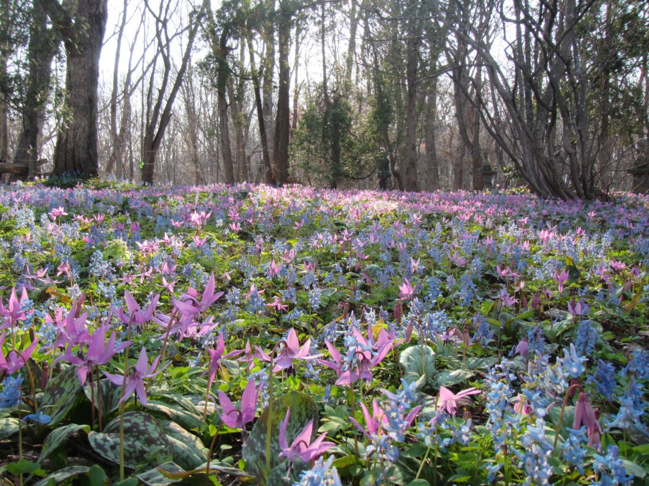 4月下旬(の後半)、道の駅の裏山の浦臼神社のカタクリとエゾエンゴサクがきれいです。