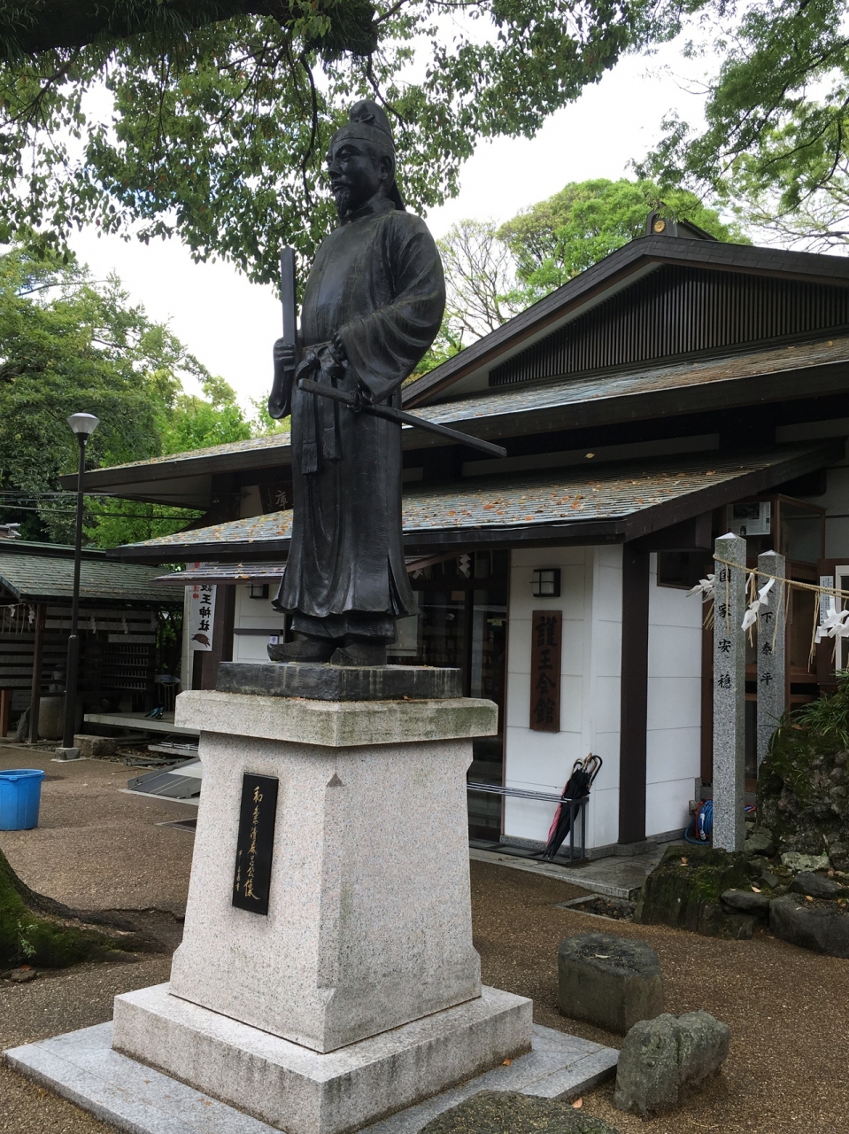 平成10年に行われた和気清麻呂公千二百年祭の時、建てられたものです。境内の北側、京都御所に面した表門から入ると、拝殿の右手、北側にあります。北側にある喜多門から入るとすぐで、さざれ石の近くです。イノシシがいっぱいある楽しい神社です。