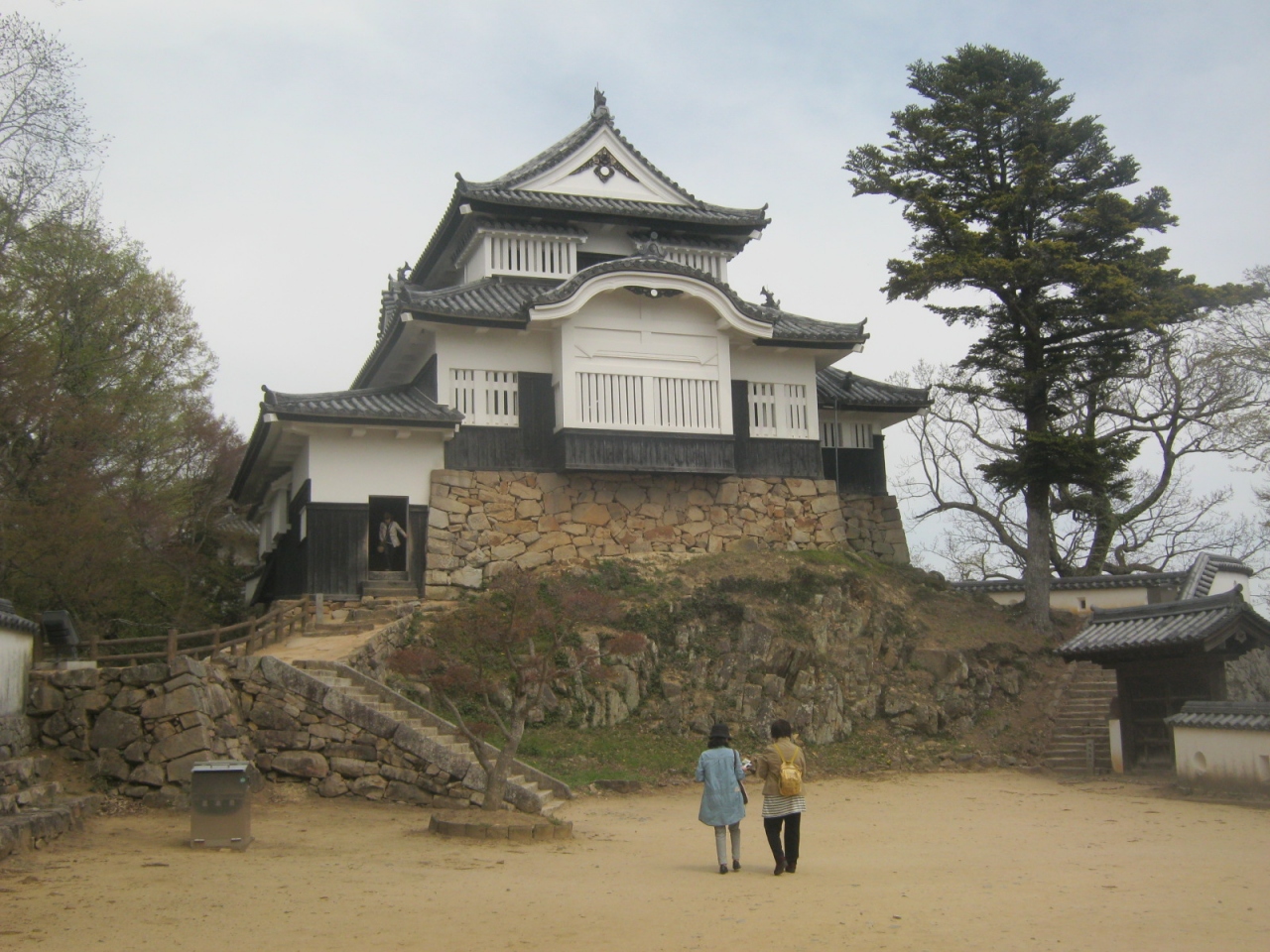 現存天守閣12城のうちの一つです。標高430mの臥牛山の山頂に建てられています。麓からは30分以上かけて登りました。上りの中ほどまではバスもあるようです。またタクシーで行く行く人もいます。城に行く途中に大石内蔵助が腰かけた石があります。城は石垣や土塀のほかに門なども見られます。城らしい城です。