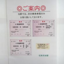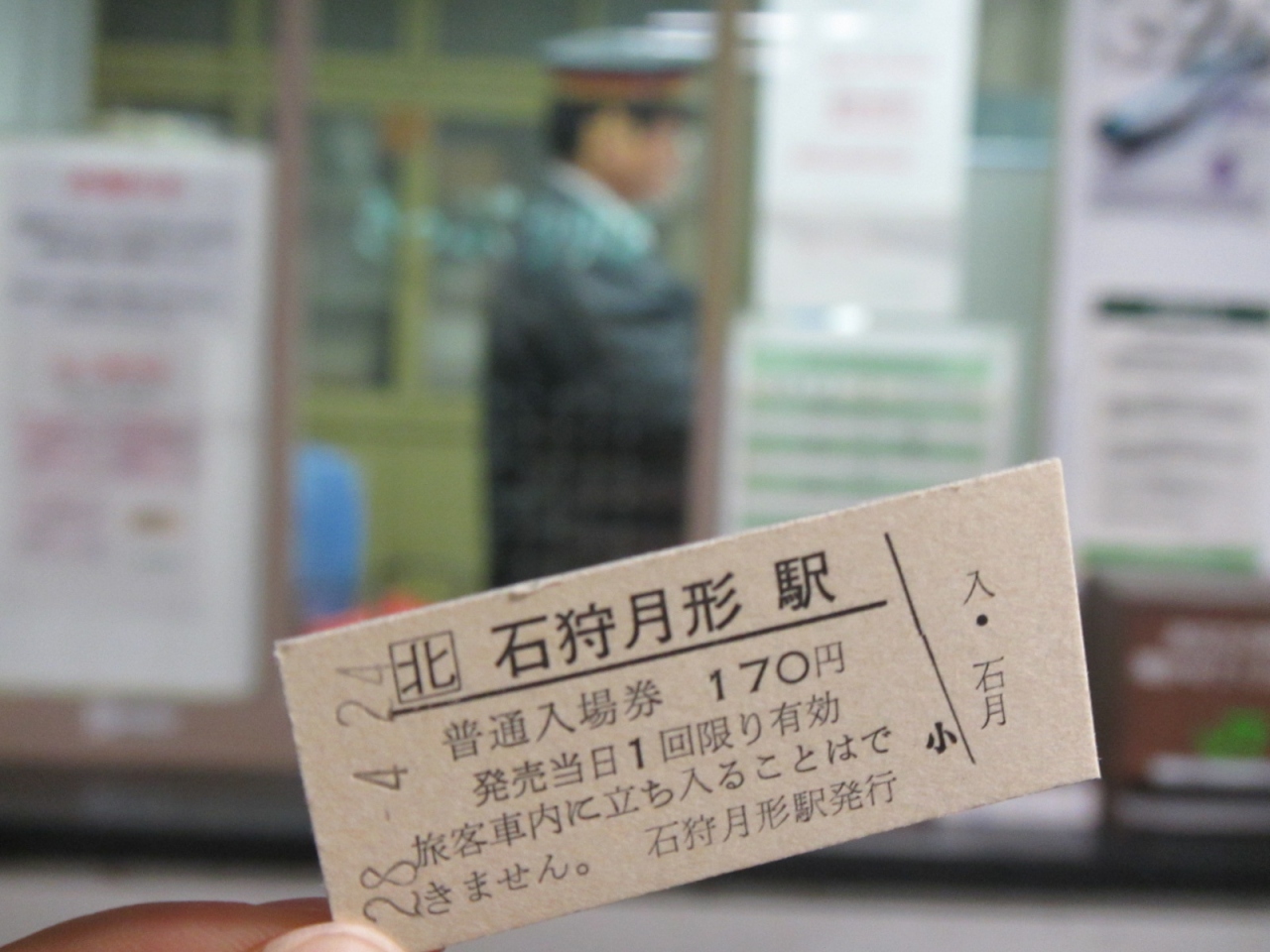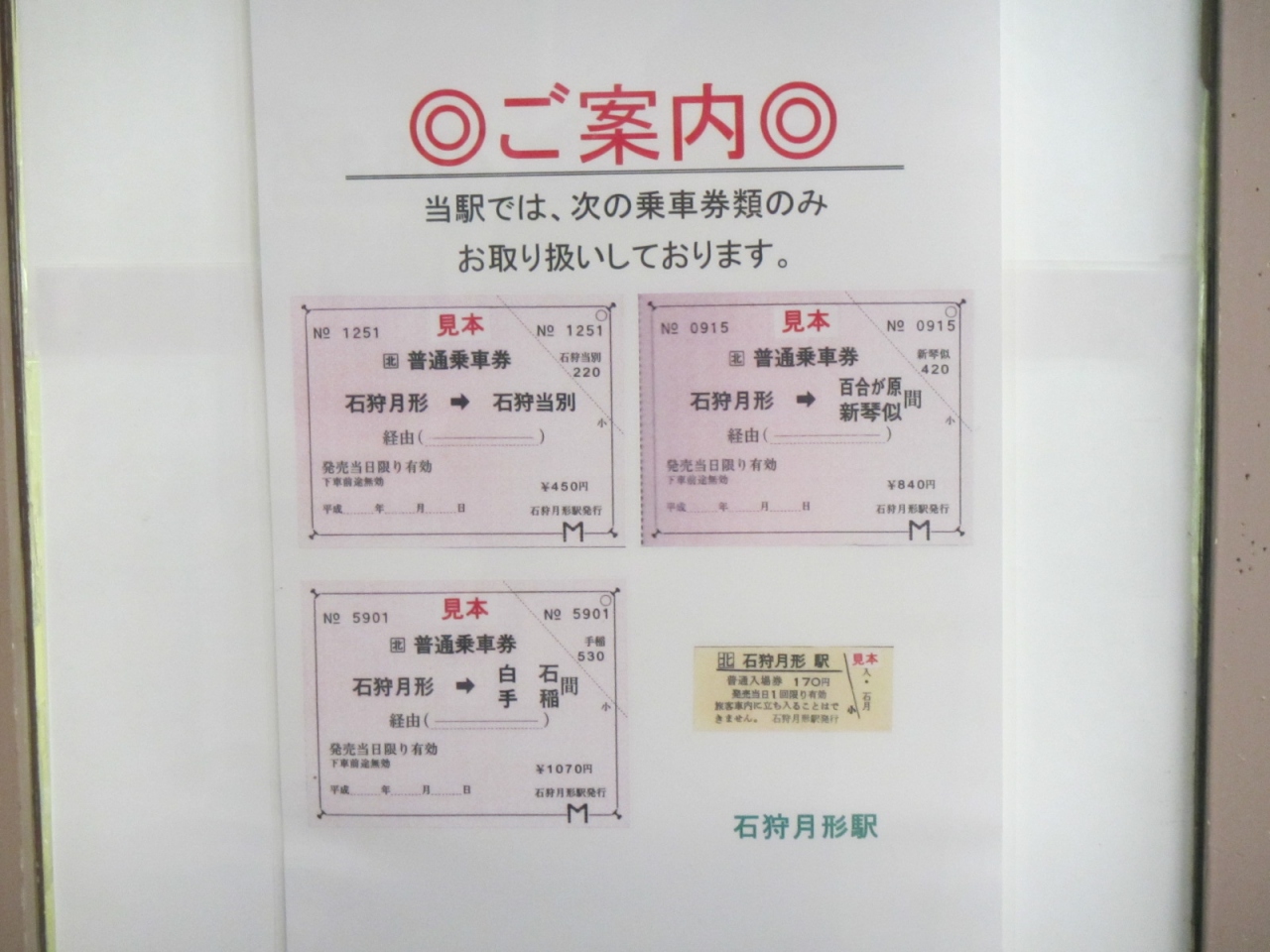 石狩月形駅では、現在でも現役で硬券入場券を販売しています。