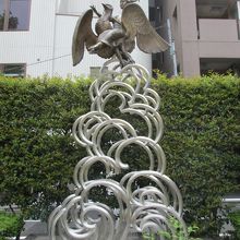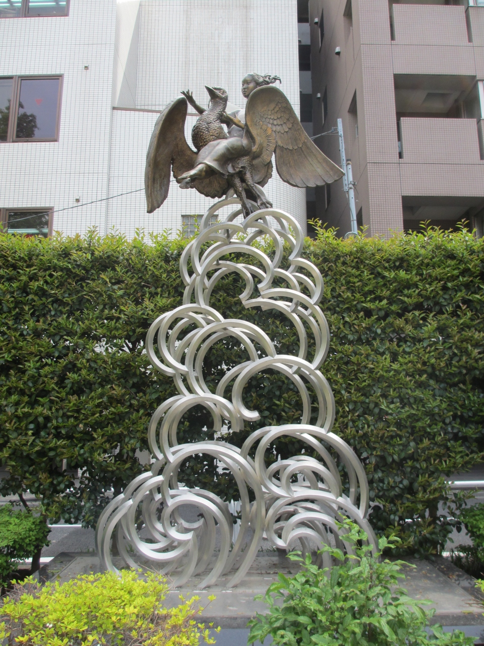 麻布では数少ない児童公園・網代公園の花壇に飾られているモニュメントです。少女、不死鳥、波、雲から構成され、愛、夢、共生、合歓を表現しているそうです。戦災から復興した麻布をイメージして製作された作品です。