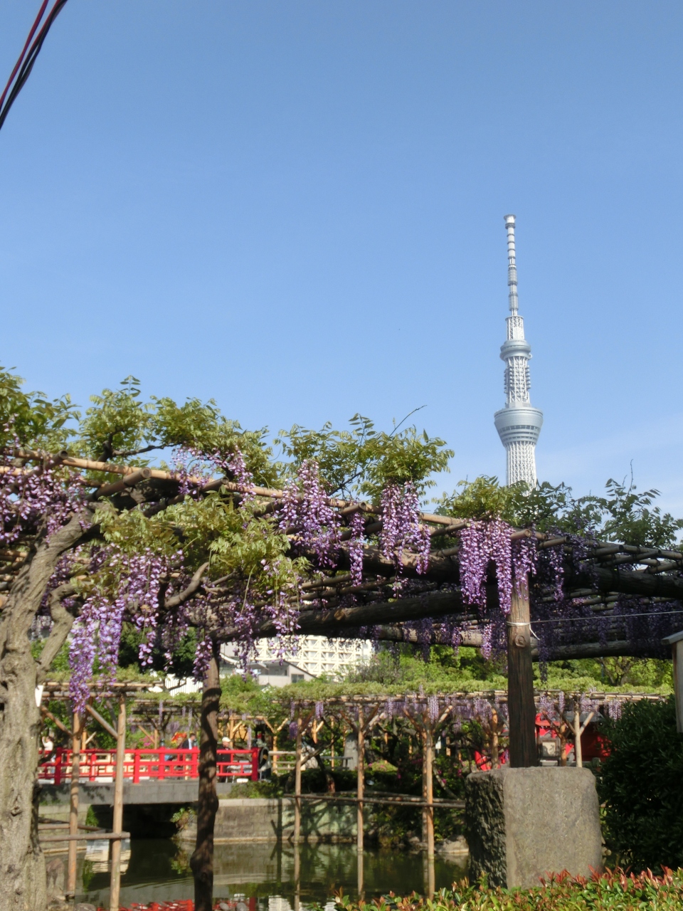 スカイツリーとのコラボが流行っていますが、晴天の青い空、藤の紫、スカイツリーの銀、