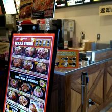 イオンモール木更津(2階)フードコート内にあるテキサスキングステーキです。アツアツの鉄板の上にごはんと半生の肉がのっており、それをその鉄板で焼いて食べます。焼き肉チャーハンのような感じのものですが、これが意外に美味しかったです。