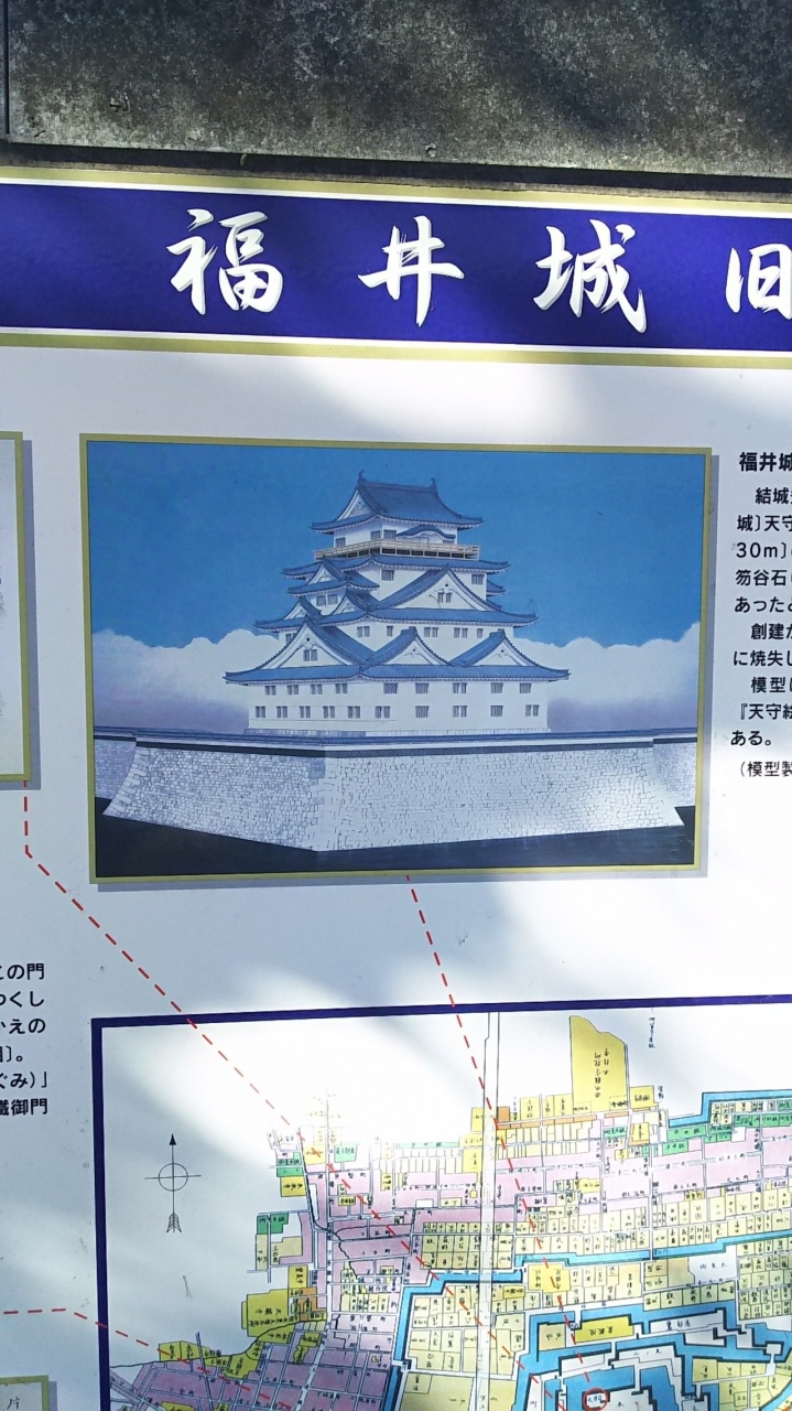 金沢城や富山城のように城らしい建物が見当たりません。福井の語源となった「福の井」や天守閣跡はありますが…物足りませんね。城を見たい方は丸岡城か越前大野城まで足を運ぶとよいかもしれません。