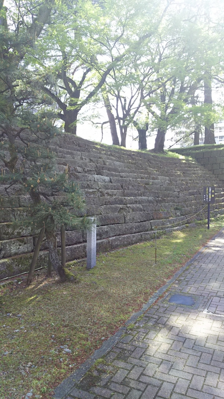 福井駅から10分ほど歩くと見えます。天守閣はなく、石垣とお堀があります。現在は福井県庁、福井県警本部、福井県議会が城址の中にあります。