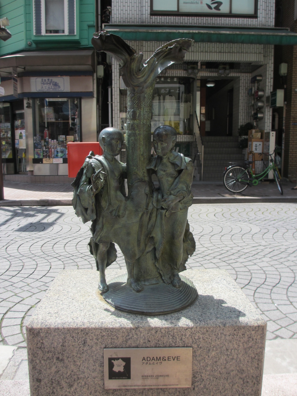 麻布十番商店街の歩道に飾られているモニュメントの一つです。麻布かりんと店舗の前にあります。フランス人の作者が奈良の禅寺庭園で精神性の探究をもたらした木霊が込められているそうです。フランス大使館の協力のもと作製されました。