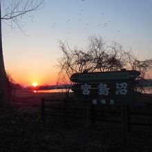 山の端に沈む夕日が沼に映り込む様子も感動的です。