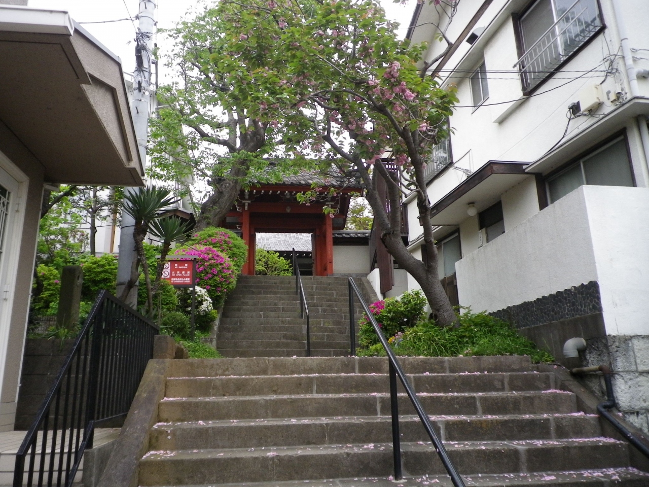 四脚門(区指定文化財)は明治後期に新宿区上落合の泰雲寺から移建したものとのことです。お寺自体は戸時代から明治にかけては深川にあったようです。目黒に移されたのは、