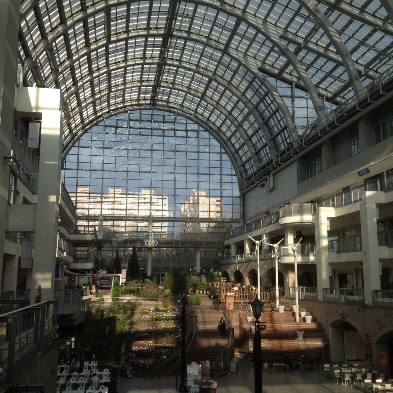 事前情報なしで行ってみました。ある一角にはレンガ造りの工場跡が保存されて、またある一角にはドーム型ガラス屋根の大きな庭園が中心にある商業施設があったりするおしゃれな商業コンプレックスとなっていました。駐車場は地下にあって1時間(90分かも)までは無料で駐車できました。