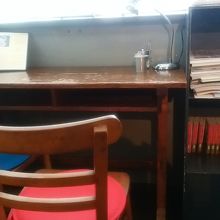 店内はレトロな雰囲気で昔の足踏みミシンのテーブルやおしゃれなつくりです。