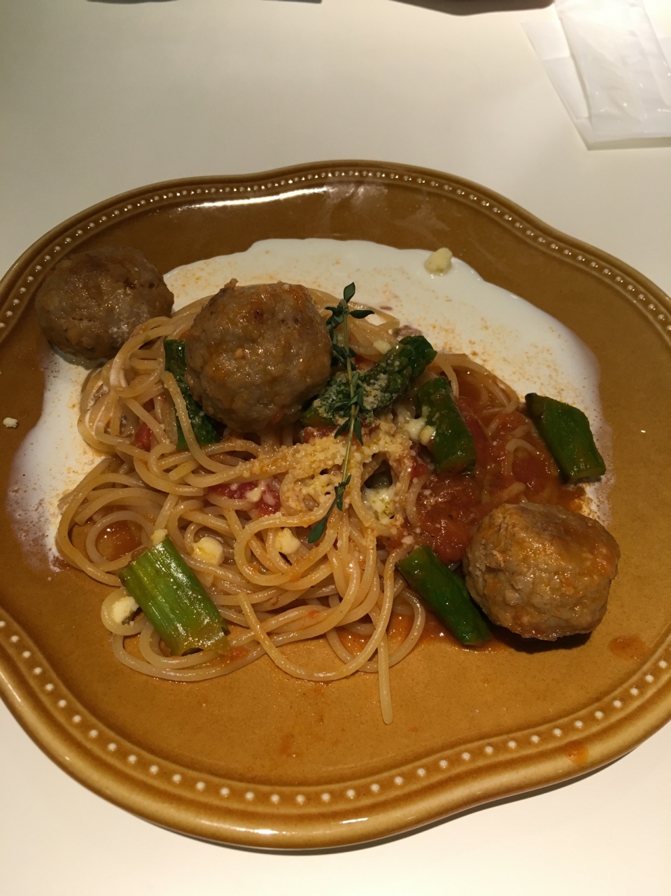 パスタはミートボールとアスパラガスのパスタをセレクト。パスタ自体も美味しくて期待以上のお味でした。