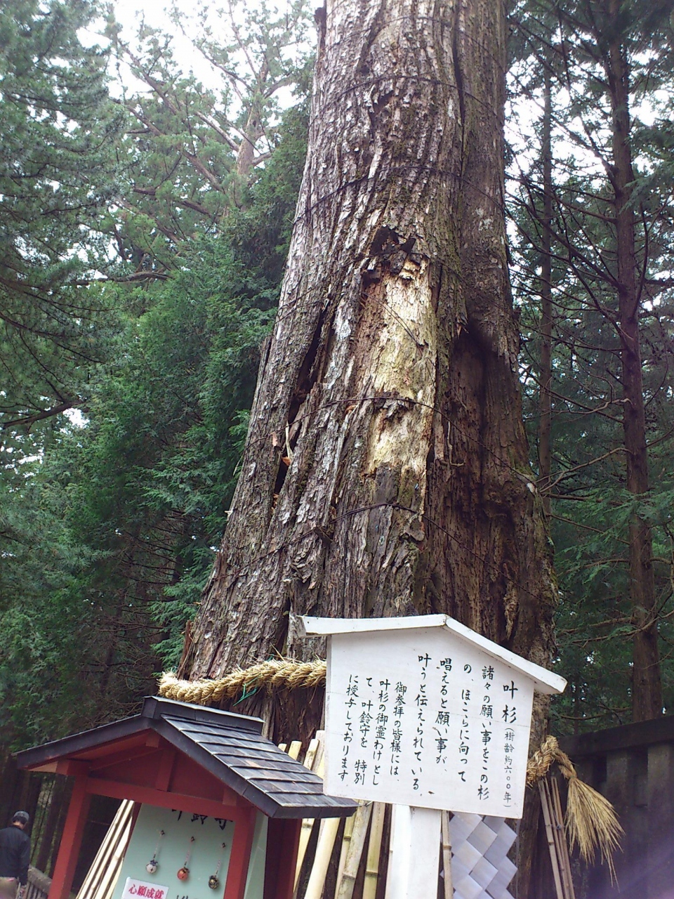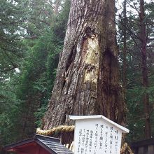 日光東照宮の家康のお墓がある奥社にある杉の木です。長い石段を登っていくと家康のお墓の宝塔のある広場に出ます。宝塔の周りを反時計回りに回って行くと、この樹齢600年と言われる杉の木があります。枝葉も生えておらず、木の途中から切られてしまっていますので、幹だけが残っています。幹に空洞があり、ほこらに向かって唱えると願い事が叶うと伝えられていると書かれていました。