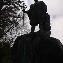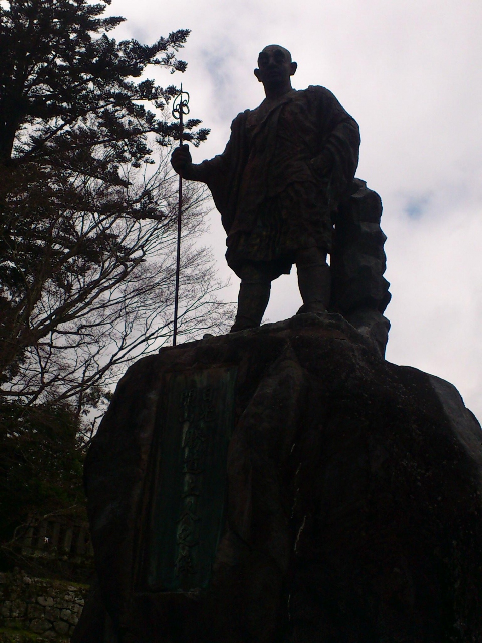 東武日光駅から世界遺産めぐりバスに乗って、勝道上人像という名前のバス停で下車しました。ここから輪王寺を起点に東照宮参詣を始める予定でした。バス停の名前の通り、バス停のすぐ側にこの像が建っています。勝道上人は日光山を開山されたお坊さんです。杖を右手に持った姿の像です。