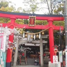 ちょうど桜の時期で鳥居の横に大きな桜が見事でした。