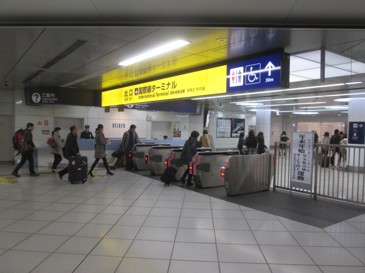 朝の時間帯に羽田空港国際線駅を利用しました。休日のため、国際線ターミナルから出発すると思われる方々が改札ゲートに目がけて進んでいました。最近は、次の国内線ターミナルまで乗車する人と変わらないぐらいの利用客になりました。