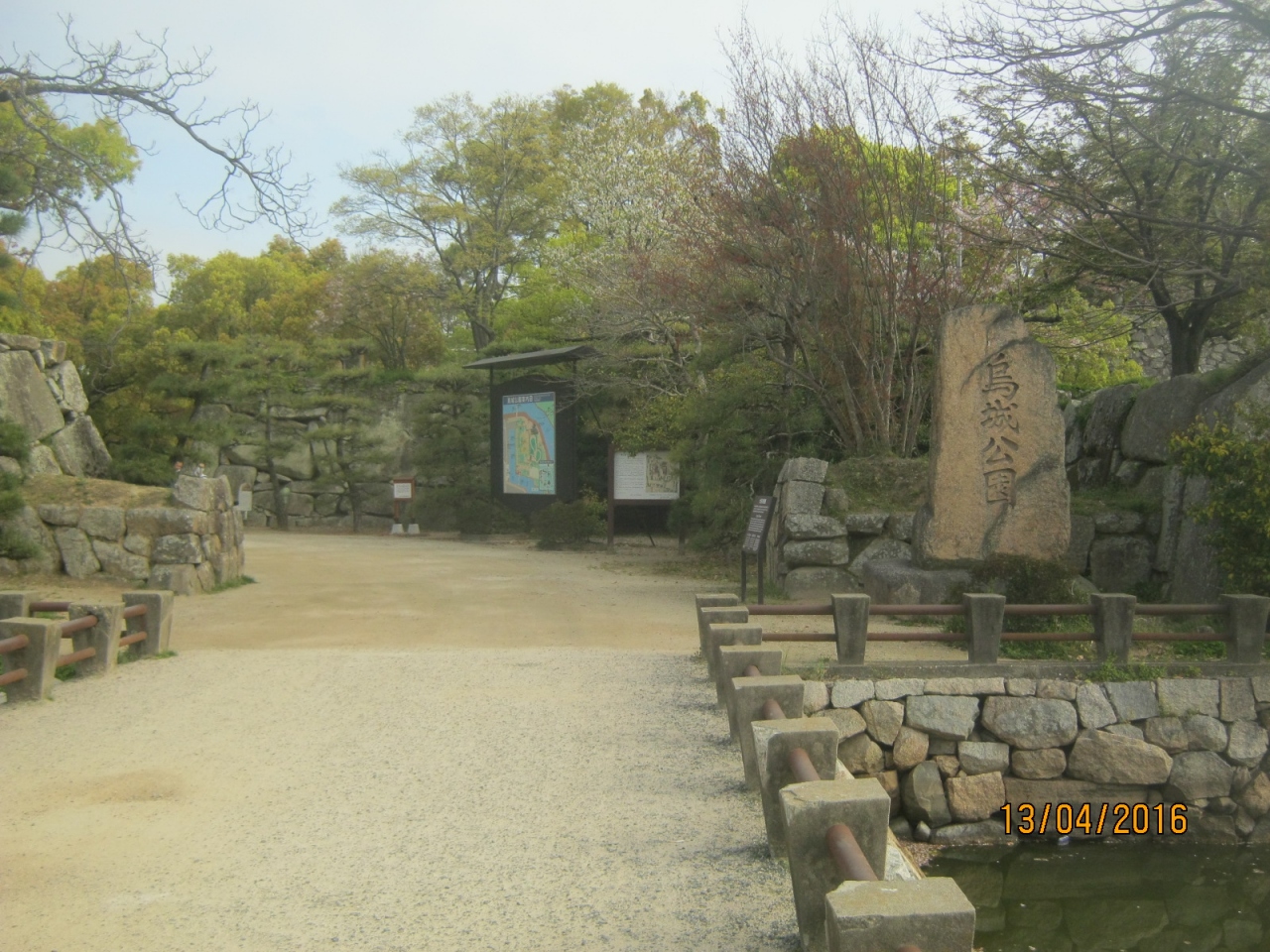 岡山城の大手門にあたる南側から入ると烏城公園となります。天守閣は有料ですがそれ以外は公園として公開されています。ただ時間制限があります。公園内には復元の櫓や櫓跡のほかに復元された門などがあります。石垣なども興味がわきます。