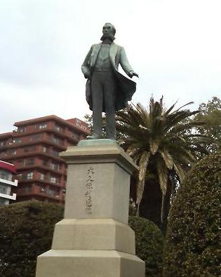 鹿児島中央駅近くの正装姿の薩摩のヒーロー