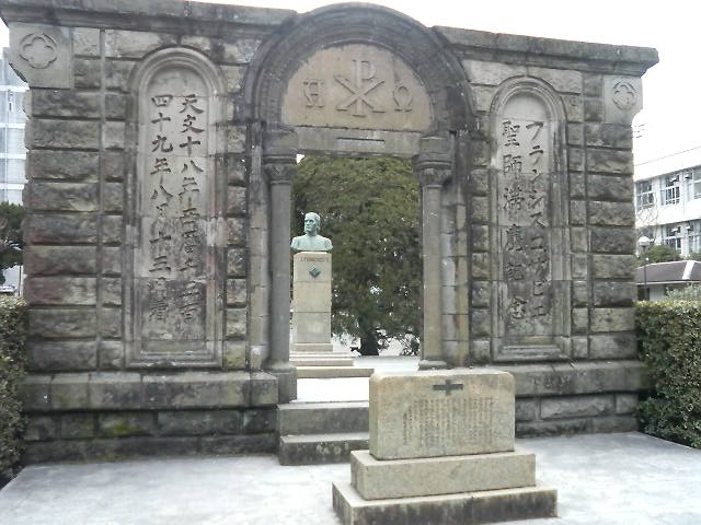 歴史の授業でおなじみの宣教師が鹿児島に来たことを記念したもので、城門のような石造りの大きな壁に「フランシスコザビエル聖師」とあり、その先にはザビエルの胸像もあったりとなかなかの見ごたえでした。