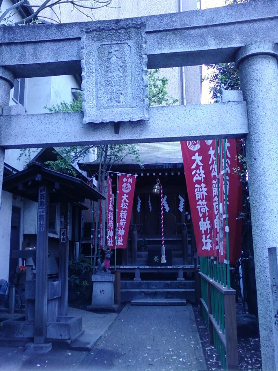 大山稲荷は、東京メトロ表参道駅A4出口から7分くらいのところにあります。大松稲荷神社の大松という名前は、かつてここに巨松があったことから言われているそうです。この松はかつて霊松とも称えられたほどのものだったそうですが、ある日暴風雨で折れてしまって、根株のみが残り、その上にここの社殿が造られたそうです。かつてはここで神楽を献じて太鼓などが賑かだったとか。その頃の青山を思い起こさせます。