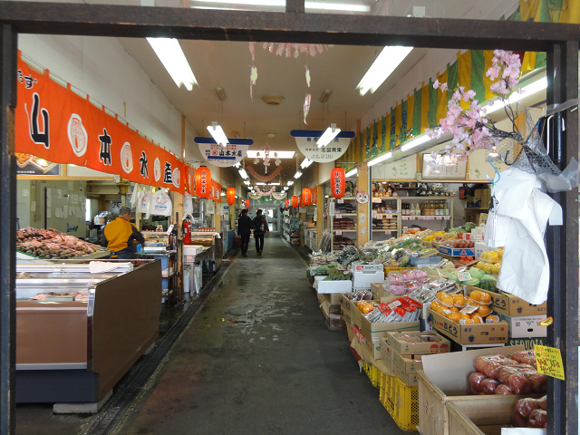 苫小牧漁港の近くにあった市場です。平日の午前中に行きましたがお客はいなかったです。海産物から野菜や果物、惣菜と調理関係用品の他にラーメンや定食、カレー、お鮨などの食堂も入っていました。さっぽろ朝市によく似ていました。地場産の鮮魚類の種類も多く、北寄貝やツブ貝、ホタテの価格は札幌より安かったです。
