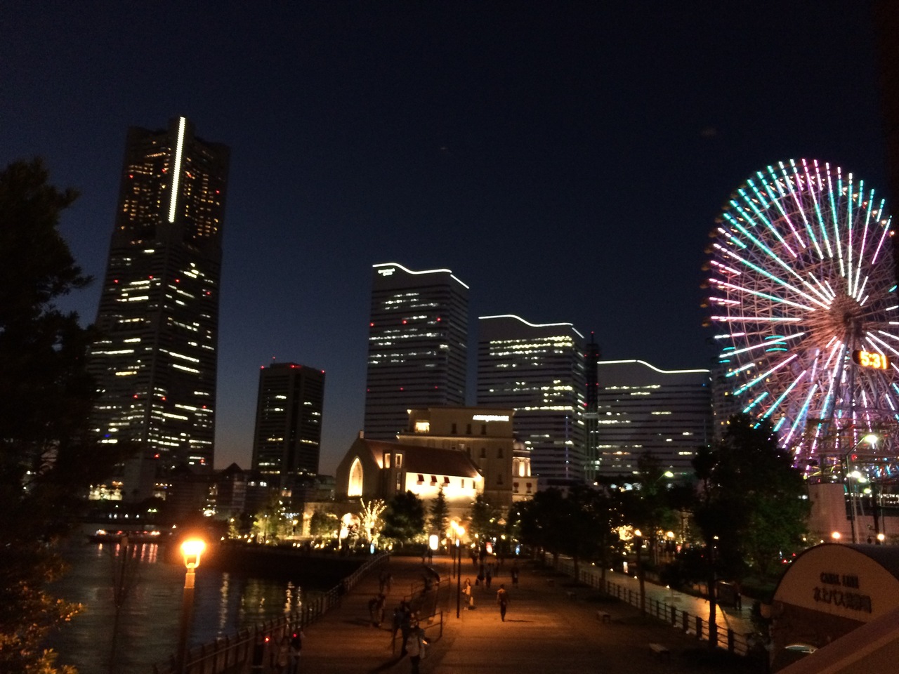 夜はみなとみらいが一望できて とてもキレイです。桜も植えられているので 春は桜を見ながらお散歩できます。