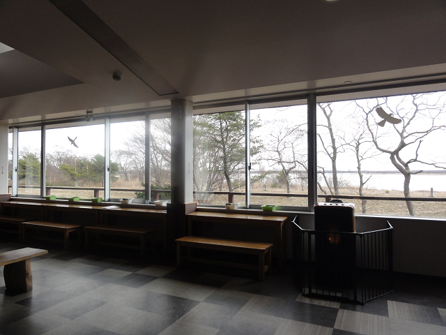 ウトナイ湖を見渡せる休憩所には双眼鏡が置いてあります。食堂や地元の農産物の直売所、さすがと思える野鳥グッズの品揃えは日本野鳥の会のオリジナルだそうです。市内で人気のマルトマ食堂製のレトルト北寄貝カレーやハスカップのジュース、お菓子、道の駅特製の土産物等もありました。買い物と休憩にお勧めの場所です。平日で混雑もなしでした。