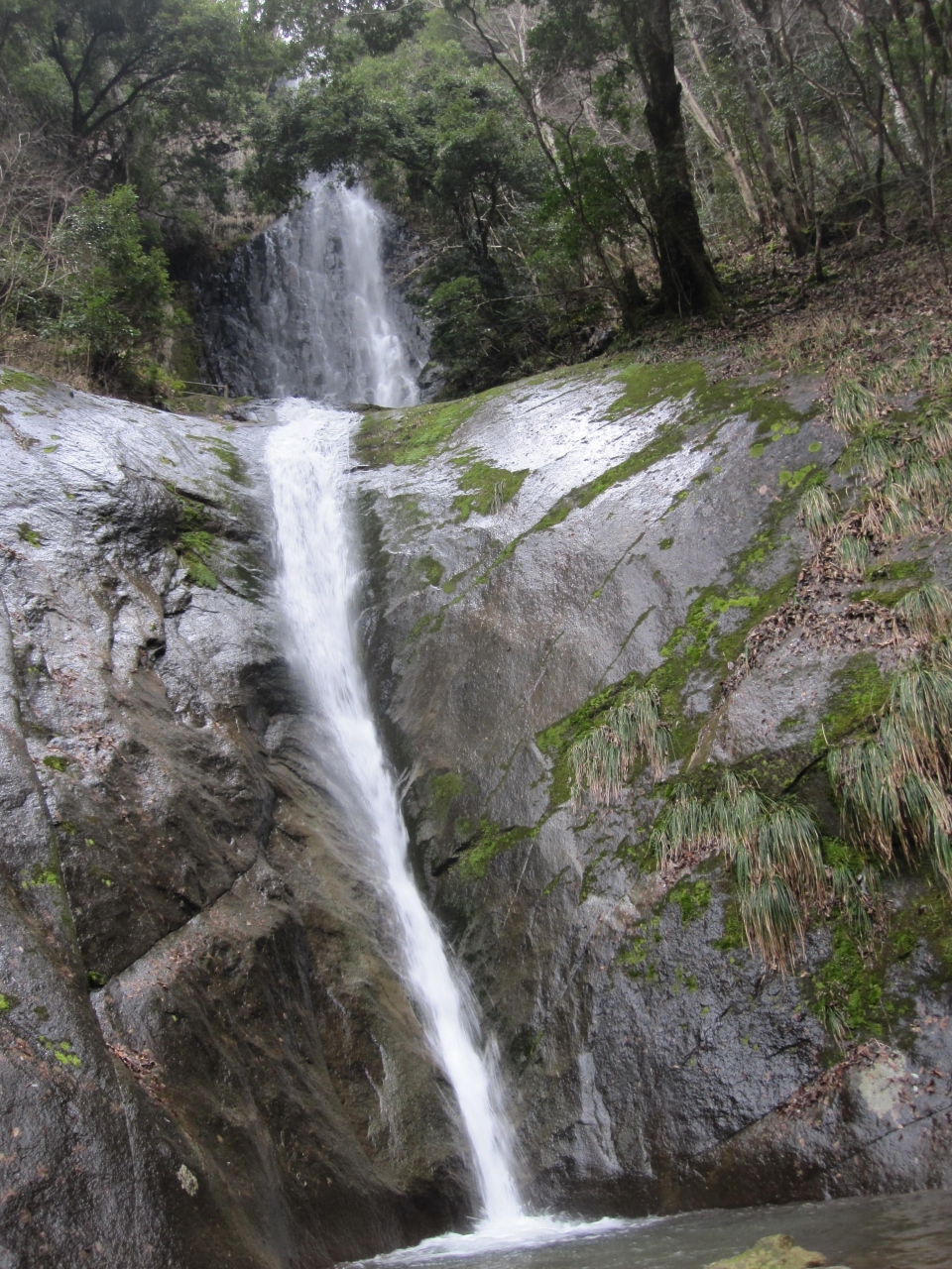 国道9号線から少し山側に入った所にあります。日本の滝100選です。滝の形が猿の尾に似ているので名付けられたそうです。2段の滝で、あわせると60mの高さがあるそうです。駐車場からすぐなので行きやすいです。