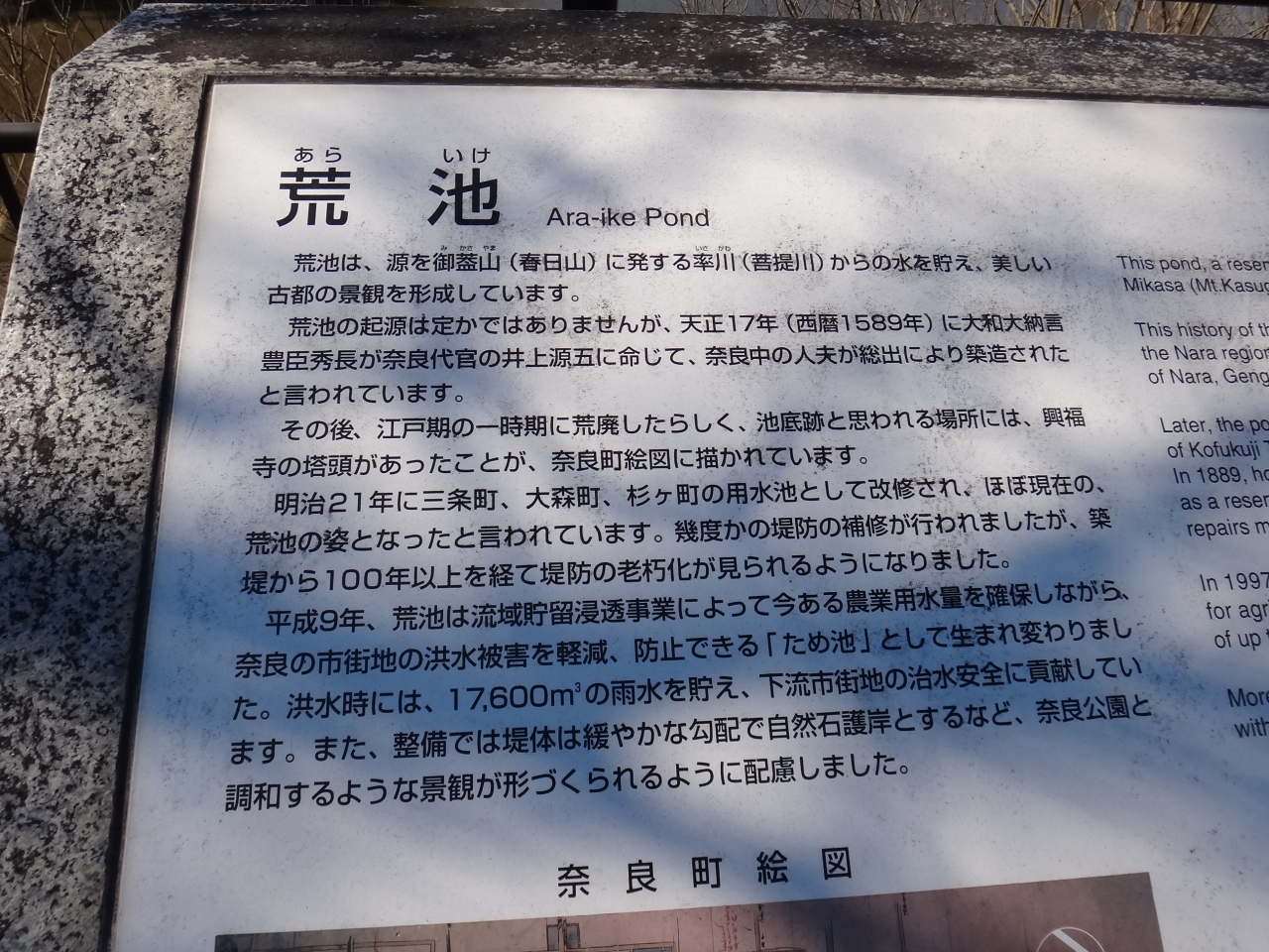 奈良ホテルの裏手の荒池では、シラサギやカモなどの野鳥がのんびりとする姿が見られましたが、池自体は濁っていて、風光明美とはいかない感じです。