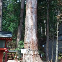 日光二荒山神社の境内にはたくさんの木があります。縁結びの御神木、夫婦杉、親子杉などですが、このご神木は三本の巨杉で、女峰山の女神が降臨したという話があるそです。縁結びの御神木は、すぎならいっしょに問いうダジャレのような由来です。