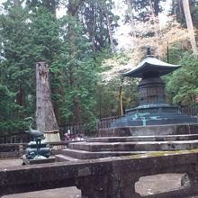 眠り猫の門をくぐり、石段を登って行くと徳川家康の墓所があります。一番奥に八角形をしたこの宝塔があります。最初は木造だったそうですが、家光の時に今の銅製になったそうです。江戸時代は将軍しか行けなかったそうですが、現在は外国人を含む多くの観光客が石段を登って行きます。久能山東照宮にも行ったことがありますが、同じ形の御宝塔でした。