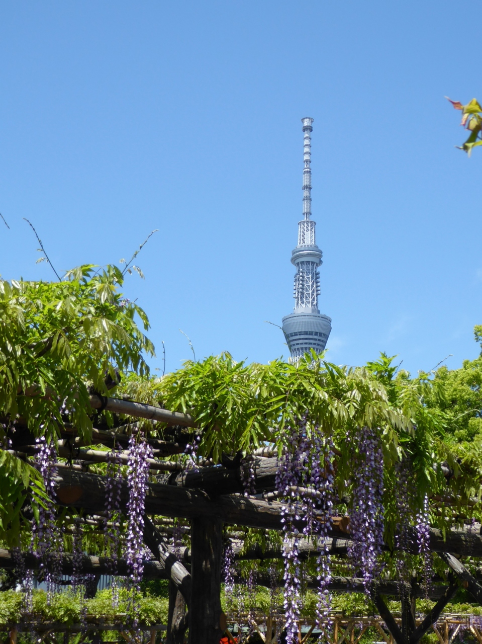 藤まつり最中は人出が多くなりますが、見事な藤とスカイツリーのマッチアップが見られます。