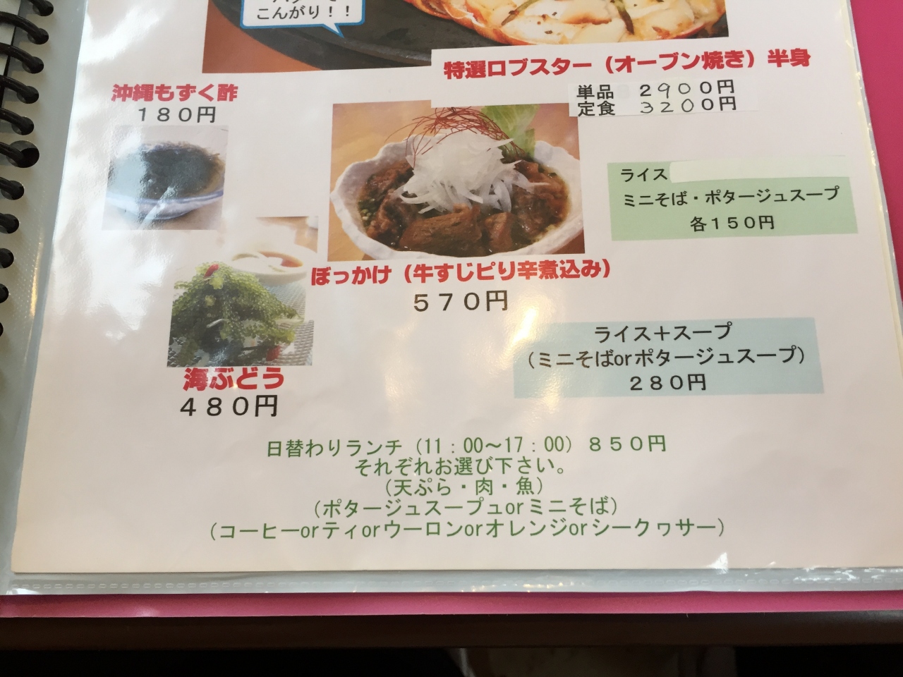 1000円以下の定食などもありますが、基本的は1000円台から2000円台です。