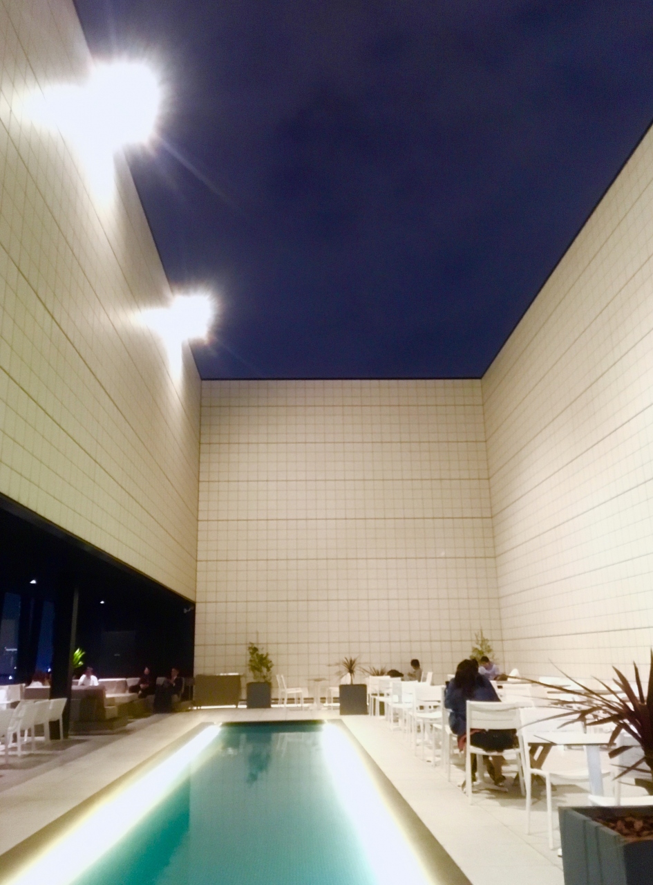 屋上はオープンスペースになっていて、銀座の風景を見下ろしながらくつろげます。2つのゾーンに分かれているうちの“WATER SIDE”は、キリコはキリコでもデ・キリコの絵を思わせる不思議な空間になっています。