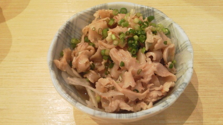 また、お通しはないので、酢モツをオーダー。名物の鉄鍋餃子はとにかく熱いので要注意。