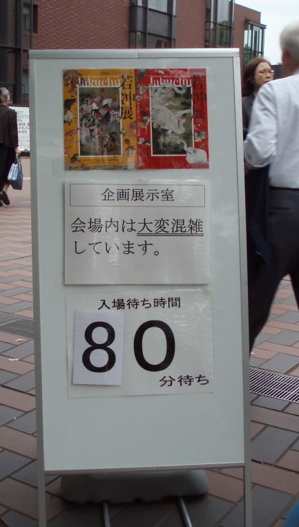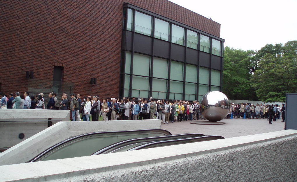 先ずは26(火)12時頃に下見に行き、「80分待ち」。プラカードを持つ係りの人に聞くと、その日は9時で100人待ちくらいだったという情報を得、翌日早めに並ぶ決心を固めました。
