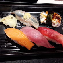 北ウイングと南ウイングの間の中央の場所にあるので飛行機の行き先はどこでも行きやすい場所にあります。制限区域内なので、時間を気にせず食事が出来ます。築地にあるお店の支店のようでちゃんとしたお寿司です。近くのテーブルに持っていく事は出来ますが飛行機に持っていく事は出来ません。目的地に着いてから一杯食べたいので朝は少しだけ美味しいものを食べたい時にはいいかもしれません。そばに蕎麦屋さんもあるので家族で、違うものを食べることも出来ます。