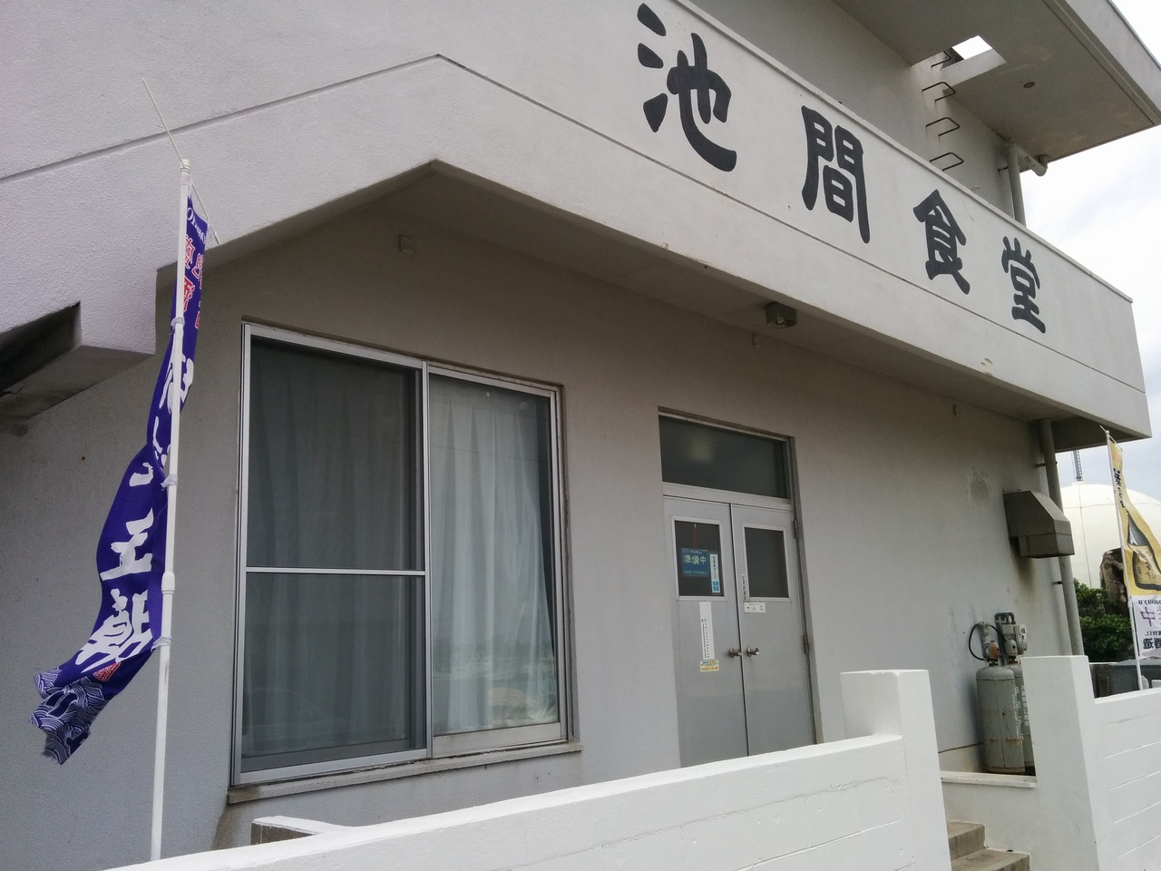 この食堂の場所は、池間漁港の一角にお店を構え、食堂の建物には「池間食堂」と表示