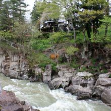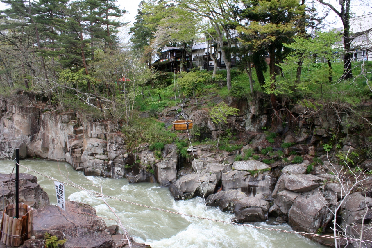 厳美渓名物ということで行ってみました。岩場にある東屋にある桶にお金を入れて板を叩くと、団子が空を飛んできます。一箱400円で、みたらし、あん、ゴマが一串ずつ入っています。お茶もこぼれず収まっています。