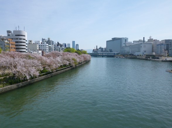 天満橋からの大川沿いの桜も素晴らしいです