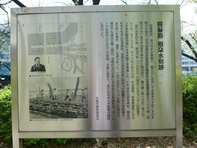 大阪の花見で有名な造幣局桜の通り抜けにいきました。大勢の人でしたがとても綺麗でした。そして南天満公園を抜けて中之島公園へ行きましたが、その公園内にはいくつかの記念碑があって将基島粗朶水制跡碑もそのひとつです。難しい字ですうが「しょうぎしまそだすいせいあと」 と読みます。淀川(大川)からの水が逆流して起こす水害を防ぐために1874年に築造された隔流堤の跡を示す石碑とのことです。日本を愛し29年間過ごしたオランダ人技師の建築です。素晴らしいお話ですね。