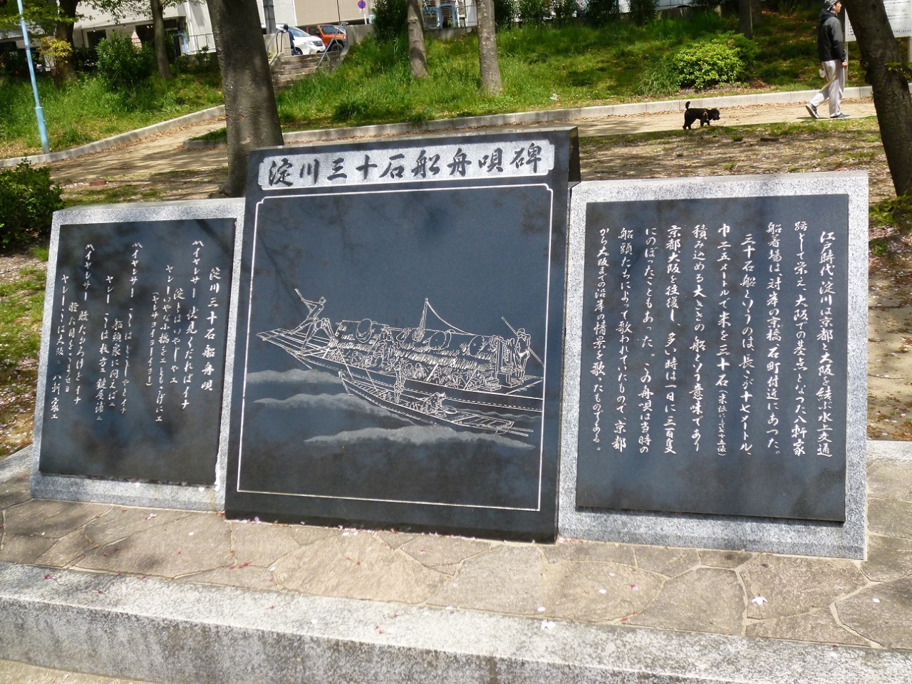 大阪の花見で有名な造幣局桜の通り抜けにいきました。大勢の人でしたがとても綺麗でした。そして南天満公園を抜けて中之島公園へ行きましたが、その公園内にはいくつかの記念碑がありますが淀川三十石船舟唄歌碑もそのひとつです。江戸時代には列車や乗用車はありません、ここ大阪の八軒家船着場から伏見や高瀬川を結び旅をしたり荷物を運ぶ方法として三十石船を運行していました。ここにそこで歌われていた唄が歌碑として残されています。活気があったのでしょうね当時の姿が眼に浮かんできます。