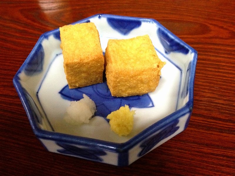 あんかけ豆富は2椀1組で、餡は濃すぎずからしが良いアクセントになっており残さず頂ける上品な味に仕上げられています。絹揚は揚げたてで外はカリカリ、中はなめらかです。中は熱いので火傷に注意必要です。