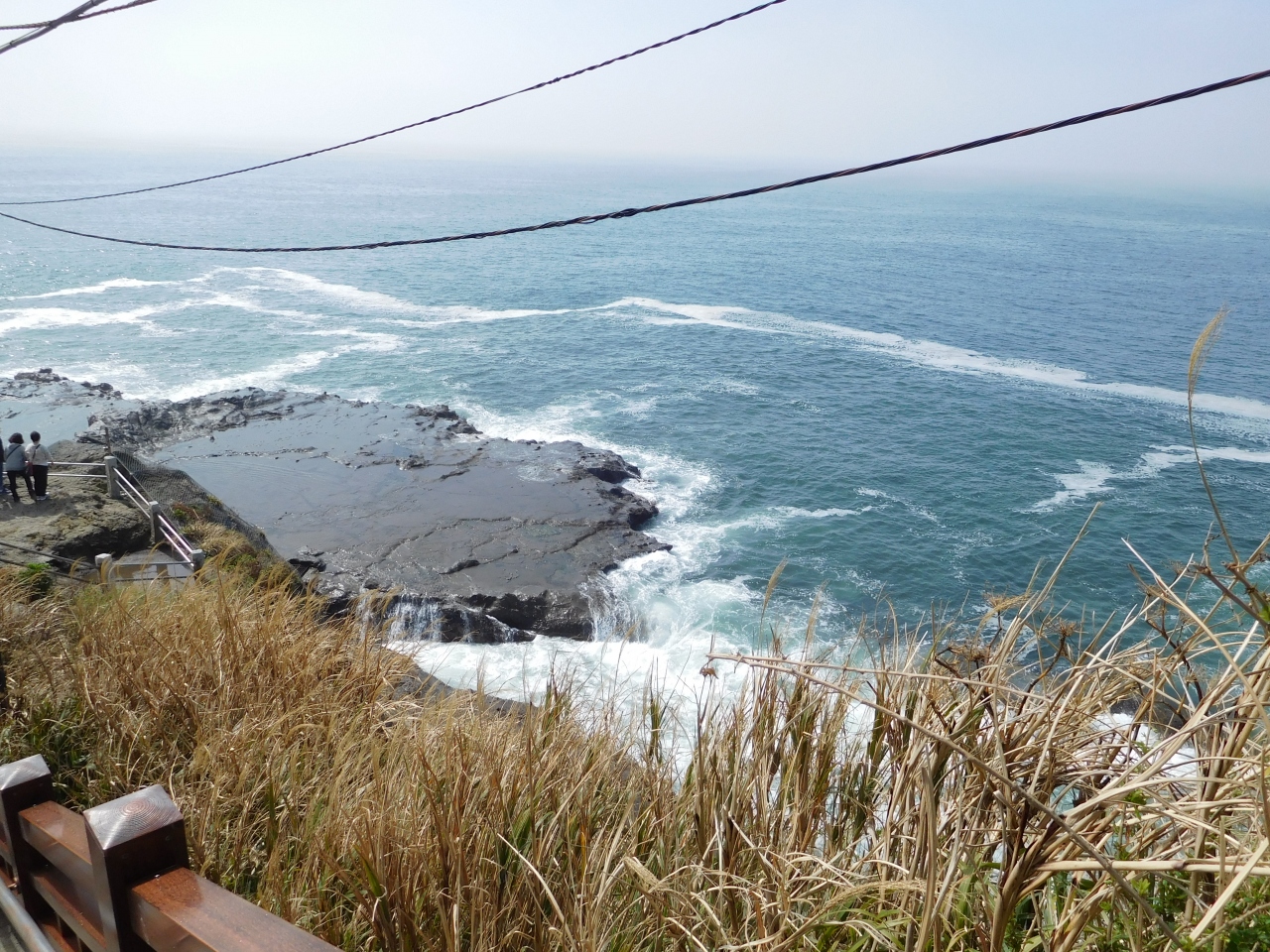 神奈川の景勝50選に選ばれたスポットで、晴れた日の夕景が絶景のようです。江の島岩屋まであと少しという場所で、階段を降りてくると、目の前に海が広がって見える岩場が稚児ヶ淵でした。休憩も兼ねて、沢山の人達が景色を楽しんでいました。