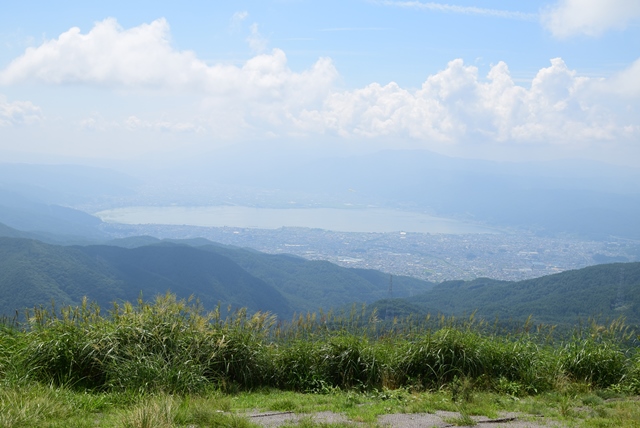 山上には、牧場もあり、ペット同伴可ですが、高ボッチ山への山頂にはペット同伴できません。山頂からは諏訪湖が目の前に広がってます。例年行われる諏訪湖の花火大会、ここから見るのが特等席なんじゃないのかと思いました。また、この日は生憎雲が広がっていてよく見えなかったけれど、実は、諏訪湖の向こうに富士山が見えるはずなんですよね。夜景も綺麗だし、早朝の雲海も素敵ですよ。