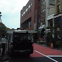 おそらく、通り沿いにある浅草公会堂の建物の色からそうなったんでしょうけど、