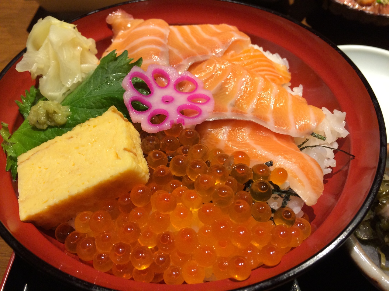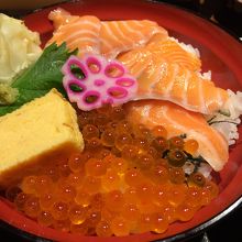 料理は蕎麦、うどんが付いた海鮮丼やお寿司、定食などです。