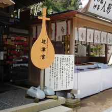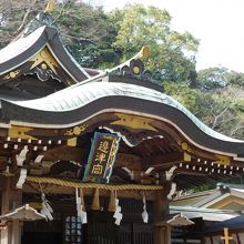 辺津宮は、江島神社の3つの宮(辺津宮・中津宮・奥津宮)の本社で、田寸津比賣命(タギツヒメノミコト)を祀っています。一番下に位置している宮なので、「下之宮」とも呼ばれています。拝殿前には、巾着の形をした珍しい賽銭箱がありました。また、茅の輪も設置されていました。