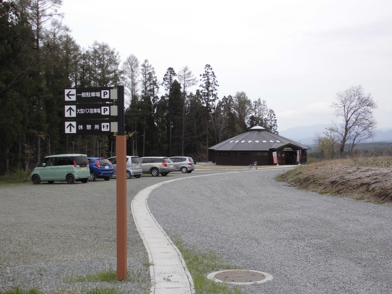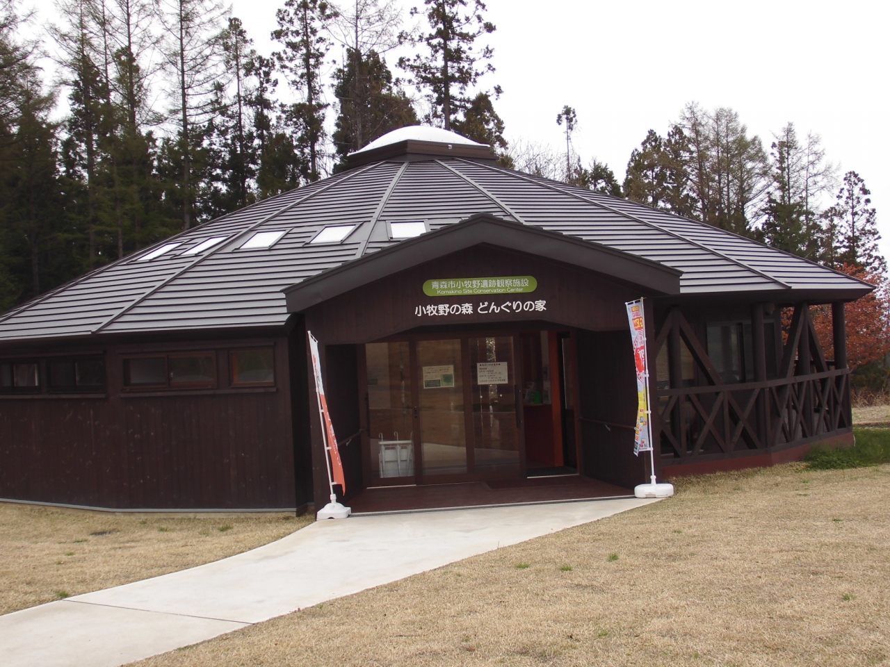 駐車場はさほど広くないですが レストハウス?青森市小牧野遺跡観察施設 (小牧野の森・どんぐりの家)があり トイレも完備されています