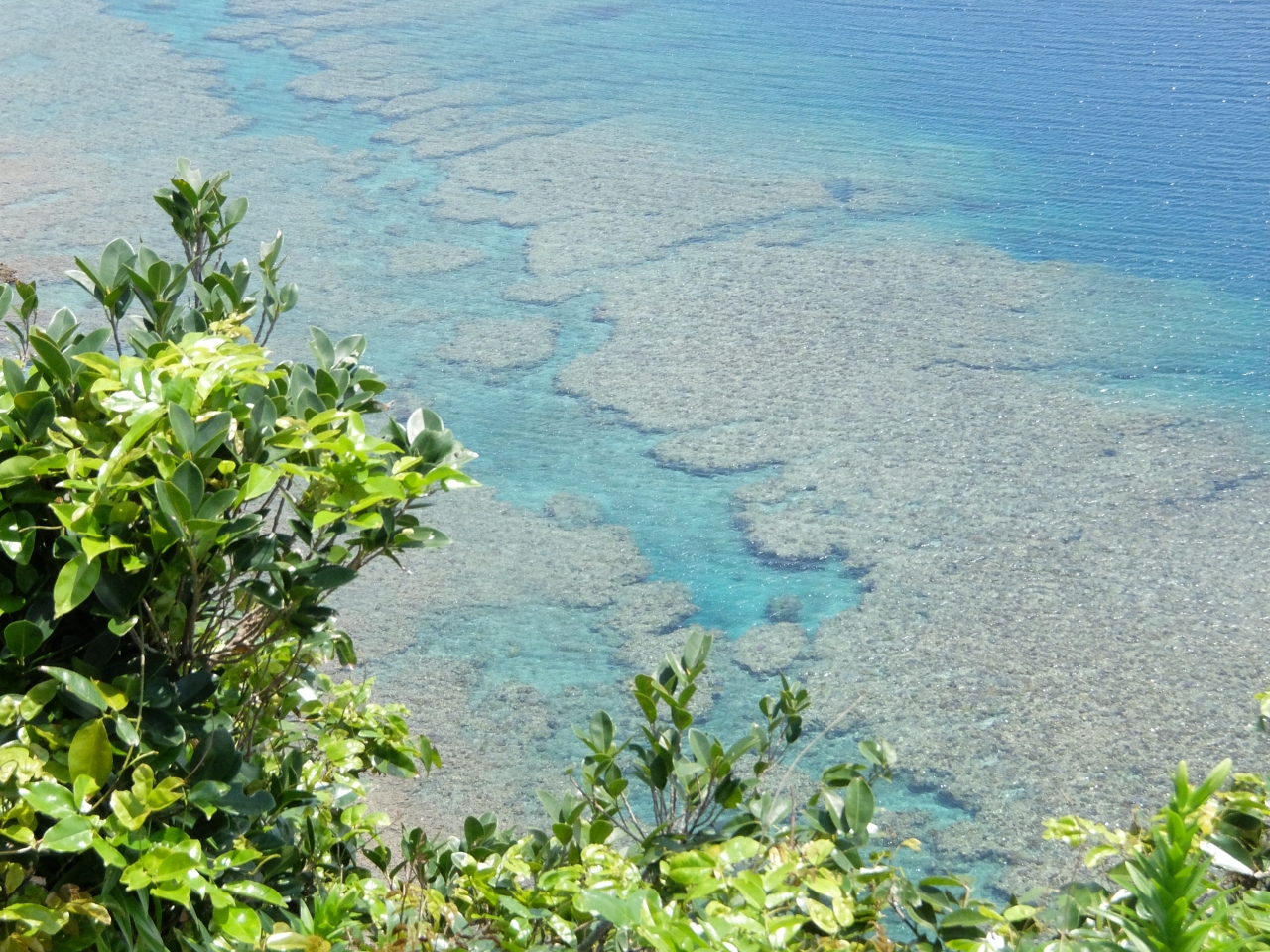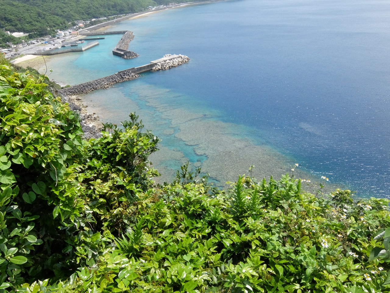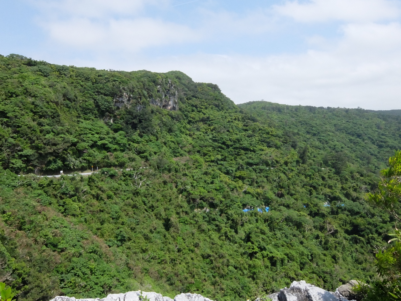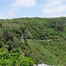 大石林山を後にして、岐路途中にある茅打ちパンダ(絶壁)をみる。駐車場を降りて数百メーター歩くと看板があり、そこから見る絶壁と海の色が素晴らしい。しかしそれだけであり、数分の立ち寄りで済んでしまう。晴れていたので眺めは良かった。