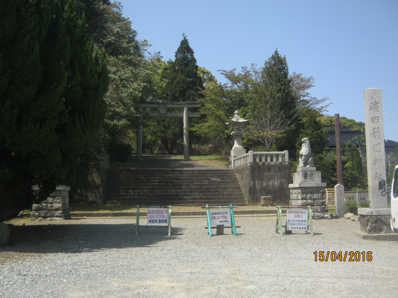 浜田城址がある山自体が公園になっています。公園に入るには公園内にある護国神社の鳥居をくぐり石段を上ります。公園内には護国神社をはじめ、津和野藩から移築した門やこの地にゆかりの人物の像や碑があります。入り口を探すのに苦労しました。